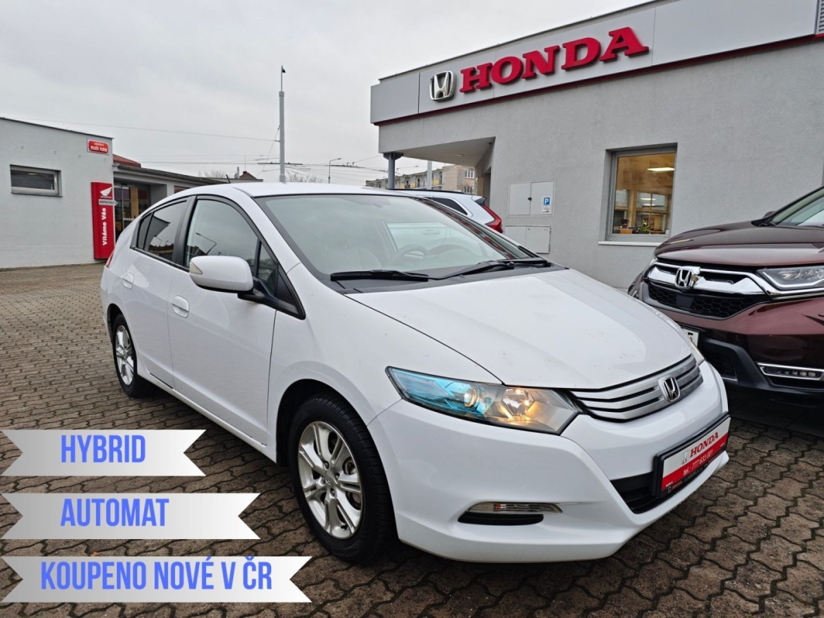 Honda Insight - Hybridní pohon IMA: benzinový motor o objemu 1339 cm3 a výkonu 65 kW je zkombinován s 10kW elektromotorem; automatická bezestupňová převodovka CVT s mechanickým variátorem; 2x klíč; Koupeno nové v ČR - registrace 04/2012 - model 2009; pravidelný servis pouze Honda doložen servisní knížkou - 12/2025 provedena výměna motorového oleje, filtru a brzdové kapaliny; 07/2024 při 147.898km výměna oleje v převodovce CVT; originál autorádio Honda na CD MP3 AUX; multifunkční volant; isofix; originál 15" alu Honda se zimními pneu; proveřeno Cebia Autotracer; kosmetické vady laku; český TP; Tato inzerce není návrh na uzavření kupní smlouvy dle zákona 89/2012 Sb.;